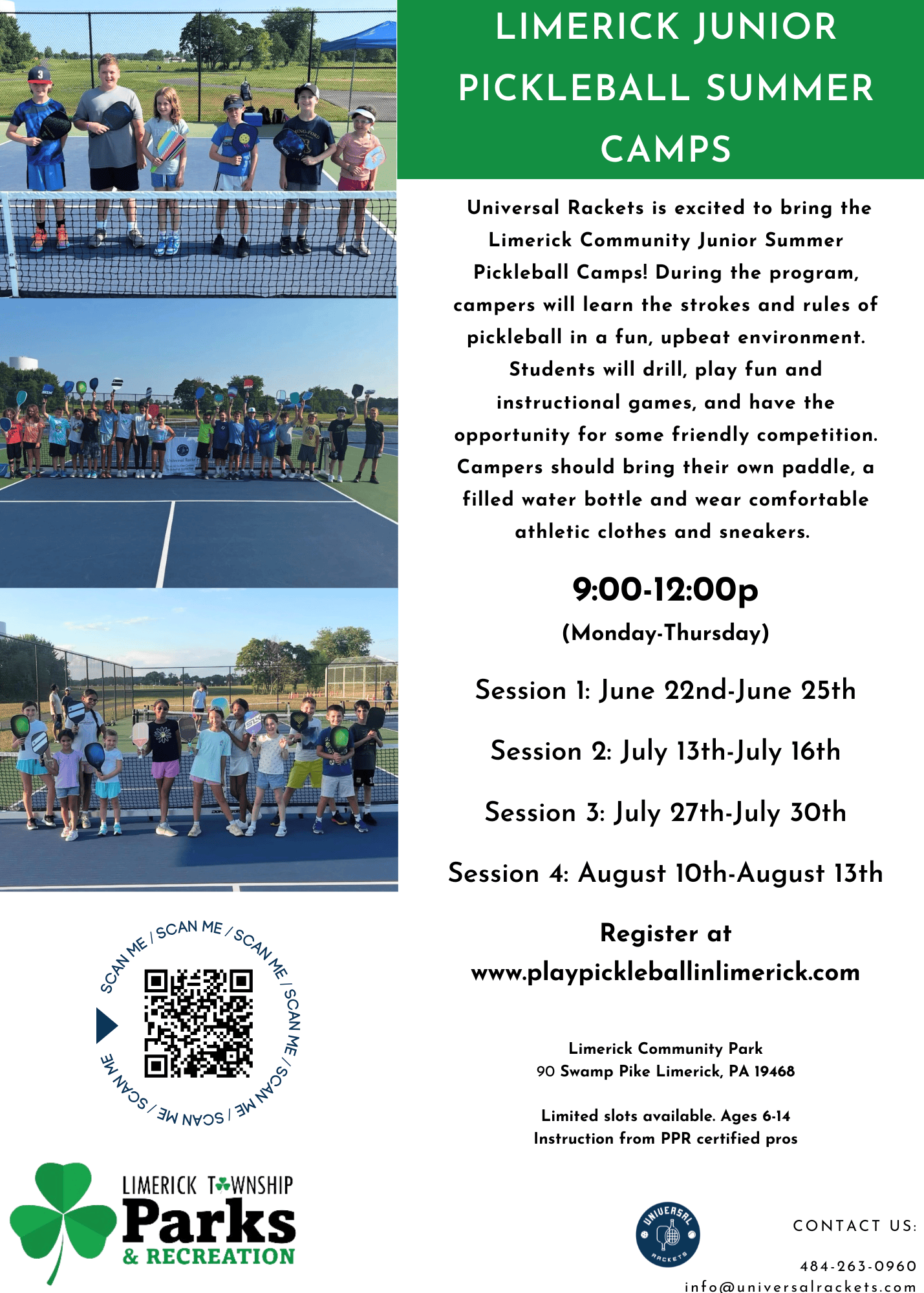 Session 1: Junior Pickleball Camp 9:00-12:00p (June 22nd-June 25th)